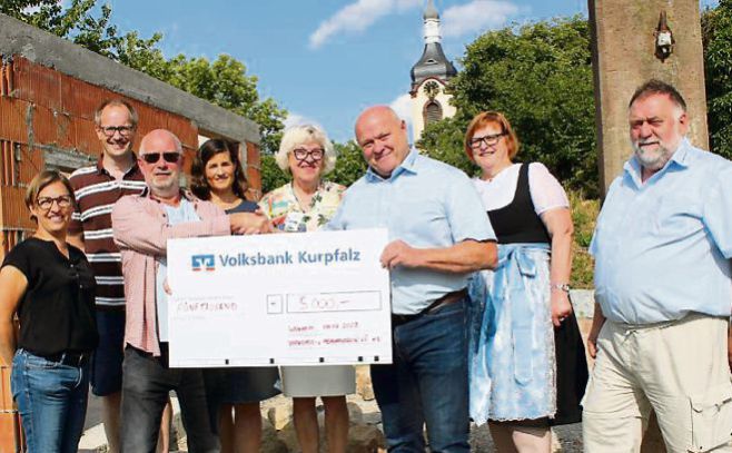 Stattliche 5000 Euro gibt der Verkehrs- und Heimatverein Lützelsachsen zum Backhaus dazu. Es freuen sich Caroline Messelhäußer, Christian Lehmann, Michael Metz, Nadja Weiß, Doris Falter, Stefan