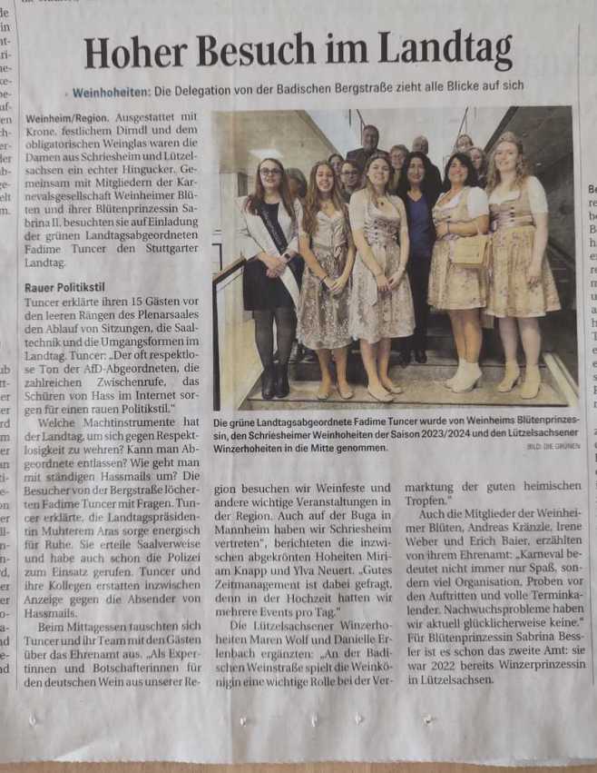 Wein sehr verbunden ist. Mutter Andrea, Tante Pia und Großtante Agnes waren Prinzessinnen, Königinnen und sogar Kurpfälzische Weinprinzessin. Christin machte im Sommer an der Helen-Keller-Schule