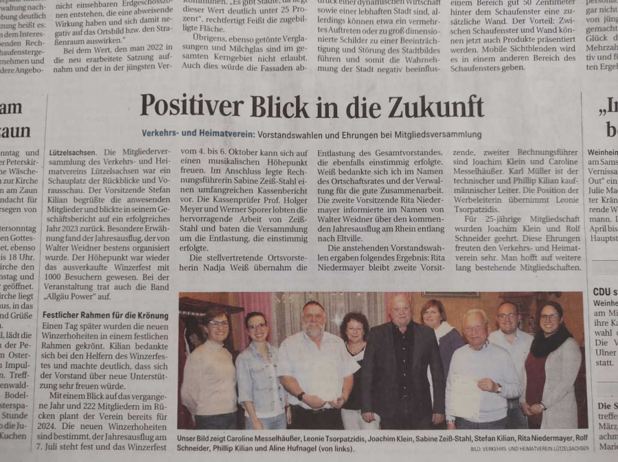 Falter dankte für die enorme Arbeit des Vereins das ganze Jahr über, insbesondere beim Winzerfest, das sowohl bei den einheimischen als auch bei den vielen auswärtigen Besuchern großen Anklang